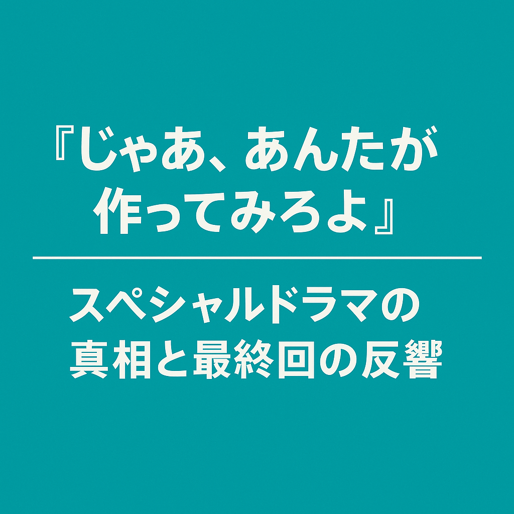 ドラマ『じゃあ、あんたが作ってみろよ』が最終回を迎え、多くの視聴者がその結末に衝撃を受けました。